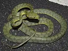Boiga flaviviridis, the yellow-green cat snake, is a species of mildly venomous, rear-fanged snake of the family Colubridae, which is found in India. It is a rear fanged, nocturnal, arboreal species of snake that probably feeds on lizards, frogs and small birds. It was first described in 2013.