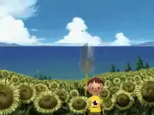 On the penultimate day of Boku's vacation, Shirabe goes missing, and Boku is able to track her to a large sunflower field. Shirabe, who has thus far been distant and irritable towards Boku, opens up to him and tells him that she does not want him to leave. On August 31, Boku's father returns to bring him home; as Boku departs while watching the Sorano family waving goodbye, his adult self narrates that it was a summer he would never forget.[5] The game concludes with an epilogue set twenty-five years later depicting Boku's life as an adult, with multiple possible scenarios contingent on choices made by the player throughout the game.[6]