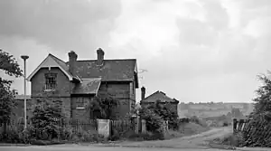 The station was opened by the LD&ECR in March 1897 as plain "Bolsover". It was closed to all traffic by British Railways in December 1951, primarily due to the prohibitive cost of repairing and maintaining Bolsover Tunnel.[2] Track lifting started immediately after closure and was completed within weeks, though the station building survived as an increasingly vandalised eyesore for some years. The photograph opposite shows the characteristic Station Master's house in 1963, the station itself was behind the bush on the extreme right of the photo. Also behind the photo to the left was a railway-served jam factory.[3]