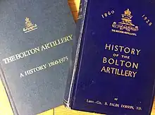 The Bolton Artillery, under various titles, has been a Volunteer unit of the British Army based in Bolton, Lancashire, since 1889. In the First World War it served in Egypt and Gallipoli in 1915–17, and then on the Western Front for the rest of the war, including Passchendaele, the German Spring Offensive and the Allied Hundred Days Offensive. Just before the outbreak of the Second World War the regiment formed a duplicate unit. The parent regiment served in the Battle of France and was evacuated from Dunkirk. Both regiments served at the Battle of Alamein and in the Italian campaign, while one of the regiments was involved in the intervention in Yugoslavia. The regiment was reformed postwar, and after a number of mergers its successors continue to serve in today's Army Reserve.