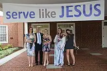 Entrance to Bon Air Baptist Church on Buford Road. Taken as part of a wedding ceremony.