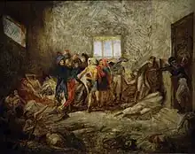 Bonaparte Visits the Plague Stricken in Jaffa (French: Bonaparte visitant les pestiférés de Jaffa) is an oil-on-canvas painting commissioned by Napoleon Bonaparte and painted in 1804 by Antoine-Jean Gros, portraying an event during the French invasion of Egypt.[1] The scene shows Napoleon during a striking scene which is supposed to have occurred in Jaffa on 11 March 1799, depicting the French general making a visit to his ill soldiers at the Armenian Saint Nicholas Monastery.