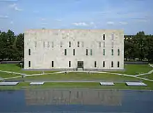 - 1 2 3 Meyer, Hans Joachim (2011-07-13). "Der Neubau der Sächsischen Landesbibliothek - Staats- und Universitätsbibliothek Dresden. Ansprache zur Bauübergabe am 15. April 2002". Bibliotheken führen und entwickeln (in German). K. G. Saur. doi:10.1515/9783110966718.35. ISBN 978-3-11-096671-8.