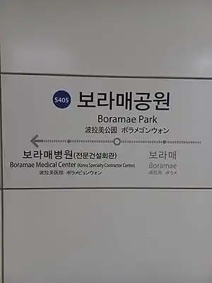 Boramae Park Station is a station on the Sillim Line. It is located in Sindaebang-dong, Dongjak-gu, Seoul.