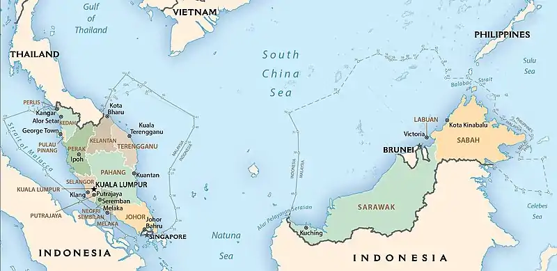 The borders of Malaysia include land and maritime borders with Brunei, Indonesia and Thailand and shared maritime boundaries with Philippines, Singapore and Vietnam.