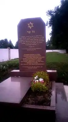 In Borshchiv at the site of the destroyed Jewish cemetery during the Soviet occupation a sports complex was built.[10] In 1990, after Ukraine gained independence, part of the stadium was reserved for the construction of the monument. It was finally established in 2011.