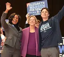 Pressley was one of the first notable Massachusetts politicians to endorse Elizabeth Warren's successful campaign in Massachusetts' 2012 U.S. Senate election.[63] During the 2016 Democratic Party presidential primaries, Pressley endorsed Hillary Clinton.[64]