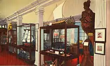 The Boston Marine Museum (1909-1947) in Boston, Massachusetts, specialized in maritime history. Its collections were displayed in the Old State House in rooms borrowed from the Bostonian Society.[1][2] Among the objects in the museum were figureheads; model ships; "whaling implements, ... prints and pictures;"[3] manuscripts;[nb 1]publications;[nb 2] and "curios and relics of the seafaring life of New England."[7] Leaders of the museum included John Templeman Coolidge,[8] Alexander Wadsworth Longfellow Jr.,[7] and Robert B. Smith.[9] In 1947 the museum merged into the Bostonian Society.[10]