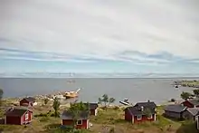 On the Swedish side ports include Haparanda, Karlsborg, Kalix, Luleå, Piteå and Skellefteå.[38] The largest towns on the Swedish side as of 2013 were Luleå (74,000), Skellefteå (71,641), Piteå (40,860) and Kalix (16,926). Luleå is the largest city in Norrbotten, with the largest airport. The 1,312 islands of the Luleå archipelago are an important tourist attraction, as is the Gammelstad church village, listed as a Unesco World Heritage site.[35] As of 1993 there were about 113,000 hectares (280,000 acres) of arable land in the Swedish part of the catchment basin, mostly used for small-scale low-intensity farming. There were five pulp and paper mills, of which one produced bleached kraft paper.[3]