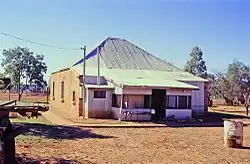 Although the majority of the surviving buildings of the town date from the 1930s or later, there are some remaining early timber structures, such as the core of the Post Office (1885). The only other evidence of stone construction nearby is the ruins of the Native Police Barracks some 25 kilometres (16 mi) from the town.[1]