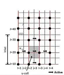 • For the first u, v, φ-cell all links to neighboring nodes are active, so there is no need of any modifications to discretion equations.