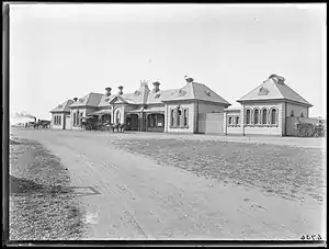 By 1877, there was significant political pressure to minimise the diversion of trade from western New South Wales to Victoria and South Australia via river trade along the Darling and Murray rivers.[7] The town of Bourke had become the key centre for pastoralists in western New South Wales since its formation in 1861. Provision was thus made to extend the line to Dubbo, reaching Wellington in 1880 and Dubbo in 1881. At the time, Dubbo had grown into a town of strategic importance on the stock routes between northern New South Wales and the Victorian goldfields.