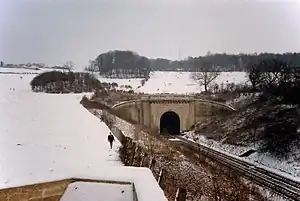 Ammunition was stored near the tunnel during World War II, reusing mine workings. During the 2010s, the tunnel was modified and the track lowered to prepare it for electrification.[3][4]
