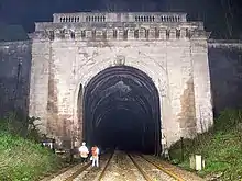 Built between December 1838 and June 1841 for the Great Western Railway (GWR) under the direction of Isambard Kingdom Brunel, the straight tunnel descends on a 1 in 100 gradient from its eastern end. At the time the tunnel's construction was considered dangerous due to its length and the composition of the underlying strata. The west portal is Grade II* listed[1] and the east portal is Grade II listed.[2]