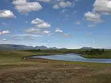 The Brúará (Icelandic pronunciation: [ˈpruːarˌauː], "bridge river") is a river of Iceland. It is fed by springs and discharges at the Rótarsandur area and the Brúará Canyons. It is a right tributary of the Hvítá. The whole river course is designated as a nature protected area.[1] The name comes from a type of natural bridge that overpassed the river near the bishup-seat in Skalholt. According to sources from the bishop a worker of the bishop broke the bridge in 1602 because the seat didn't want dirty wanderers to have it to easy to approach.