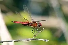 Brachymesia furcata, commonly known as the red-tailed pennant, is part of the dragonfly order Odonata. It is a species of skimmer belonging to Libellulidae, one of the largest dragonfly families in the world. Along with Brachymesia gravida and B. herbida, two closely related species within the same genus, B. furcata is often found in semi-aquatic habitats distributed throughout the Caribbean, the Americas, Argentina, West India, Mexico, and Puerto Rico.[1][2][3][4][5][6] Current populations of B. furcata are stable. The IUCN conservation status of B. furcata designates the species as "least concern" as last reviewed in 2017.[7][8][9]