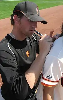 On January 18, 2008, the Giants and Hennessey avoided arbitration and agreed to a $1.6 million, one-year deal.[37] After he posted a 12.94 in his first 11 games of the season, he got sent down to the minors on May 6 to make room for Billy Sadler.[38] Used as a starter at Fresno, Hennessey posted a 710 record, a 4.83 ERA, 69 strikeouts, 37 walks, and 132+13 innings pitched in 21 starts.[3] He was called back up when rosters expanded on September 1.[39] After initially pitching out of the bullpen, he was moved to the rotation to replace Correia.[40] On September 15, he threw the only complete game of his career, allowing three runs in eight innings in a 31 loss to the Arizona Diamondbacks at Chase Field.[41] In 17 games (four starts), he had a 12 record, a 7.81 ERA, 21 strikeouts, and 15 walks in 40+13 innings pitched.[1] He was outrighted to the minors in October, but he refused the assignment and became a free agent.[42]