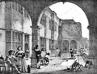 Numerous paintings and prints depict games and social events taking place on the lawn; one such painting by Joseph Nash, now in the National Fencing Museum, depicts 17th-century rapier practice, with a number of upper-class men, women and children as spectators.[22]