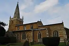 The Grade II* listed St Guthlac's Church, Branston originated in the 13th century, with alterations up the 15th. New chancel and nave roofs were added in 1895–1896 by George Frederick Bodley and Thomas Garner, Gothic Revival architects.[7] Further Grade II listed buildings are three 18th-century farmhouses,[8][9][10] the early 19th-century Old Rectory,[11] and the Village Hall dating from 1843.[12]