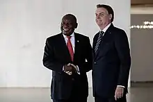 In November 2019, South African President Cyril Ramaphosa paid a visit to Brazil to attend the 11th BRICS summit held in Brasília, and met with Brazilian President Jair Bolsonaro.[5]