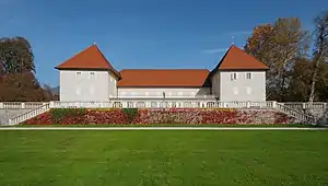 Brdo Castle near Kranj (Slovene: grad Brdo pri Kranju, German: Egg bei Krainburg), usually simply Brdo Castle[1][2][3] (Slovene: grad Brdo), is an estate and a mansion in the Slovenian region of Upper Carniola west of the village of Predoslje,[4] City Municipality of Kranj, northwest of Ljubljana. It is the Slovenian government's main venue for diplomatic meetings and other government-sponsored events.[5][6]