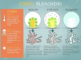 Climate change and global warming also have the ability to disrupt coral more commonly found at Bremer Bay, which will further disrupt food webs and chains. This is because increased temperatures lead to zooxanthellae algae leaving corals. This leads to corals having inadequate nutritional supply, further causing coral bleaching and coral death.[15]