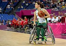 In October 2011, she was named as part of the senior national squad that would compete at the Paralympic qualifying tournament for the 2012 Summer Paralympics in London.[25] She was the captain of the Gliders at the 2012 Summer Paralympics.[26] In the gold medal game against Germany, she played 13:02 minutes.[27] Her team lost 44–58, but earned a silver medal. She scored 1 point and had four rebounds in the game.[27]