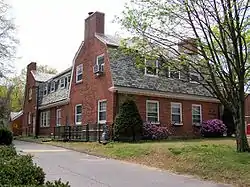 The Bristol Girls' Club building is located about four blocks south of Bristol center, on the south side of Upson Street just east of West Street. The building has two major portions, the older one a 2-1/2 story brick building in the Dutch Colonial Revival style. It is oriented perpendicular to the street, and fronts a much larger modern addition which houses primarily athletic facilities. The older structure is organized as a central block with flanking end blocks that only project slightly; each section is covered by a gambrel roof with dormers. The interior of the building houses offices, a kitchen and dining room, and smaller gymnasium spaces.[2]