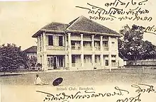 The club originally occupied premises on the north side of Surawong Road (then known as Suriwongse), at what is now the corner of Maha Set Road, not far from Surawong's junction with Charoen Krung Road, then the commercial heart of the Bang Rak expatriate neighbourhood. It was a gentlemen's club in the style commonly found across the British Empire (which did not include Siam—as Thailand was then known—though its sphere of influence extended over the country), and admitted as its members directors and senior managers of some British companies and diplomats with the British Legation.[1][2] Non-British individuals could be elected to become honorary members, and some facilities were open to ladies belonging to members' families.[3]