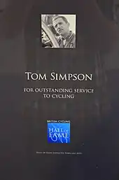 Tom Simpson's certificate in the British Cycling Hall of Fame