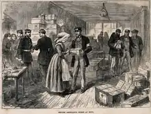 Sorting and packing linen bandages at the London office of the society, September 1870