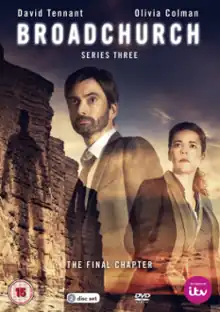 The third and final series of the British crime drama Broadchurch began airing on the ITV broadcast network in the United Kingdom on 27 February 2017 and is set three years after the events of series two. The eight-episode series follows the rape of a local woman in the fictional, close-knit coastal town of Broadchurch in Dorset, England.[1] The return features series stars David Tennant and Olivia Colman and many other actors from the first two series.[2]