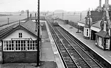 The unusual platform-based signal box is also a grade II listed building and became redundant due to resignalling works in December 2015.[5][6]