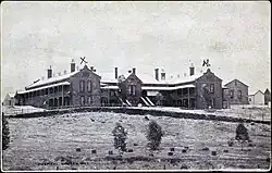 In Broken Hill’s early days the residents lived in dwellings that consisted mainly of tents or iron structure, and the small community was dealt many hardships over the including dust storms, severe heat, drought, dirty drinking water, unsanitary conditions, disease and mining accidents were commonplace. The major illnesses in the community were diphtheria, typhoid, lead poisoning, pneumonia, dysentery and enteritis and there was a high mortality rate for the young of Broken Hill.[3] In 1886 there was no medical facility in the township of Broken Hill, in contrast Silverton, New South Wales had three medical practitioners, but after BHP was approached by the Miners association it was agreed to provide a temporary hospital structure that could hold six beds, a morgue and two outhouses were also included, this first initial structure was a simple timber and iron dwelling.