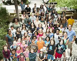 As of 2015, the school enrolls about 80 students, about half of whom are African-American or Latino.[6] The school is divided into upper and lower schools, the former ages 11 to 18 and the latter ages 4 to 11,[2] though they are not physically separated by age.[5] Children apply for admission and visit for a five-day orientation. Students are admitted by unanimous vote of a teacher-parent-student admissions committee. The group first determines whether applicants' parents support their decision to attend and whether the school can provide for the students' needs.[4] The school keeps a waiting list.[2]