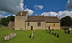 Parts of the Church of England parish church of Saint Peter are early Norman, including the 12th-century nave and font.[1][2] There is a small Norman window in the north wall.[1] The chancel arch is also 12th-century but the squints that flank it are later insertions.[2] Early English and Decorated Gothic windows have been inserted in the south wall of the nave.[2] The lower part of the bell tower was built around 1200 and the chancel is late 13th century.[3] The north porch may be 13th or 14th century.[2] The south door is set in a Caernarvon arch.[2] St Peter's was restored and altered in 1874, and is a Grade II* listed building.[2] St Peter's parish is now part of the Benefice of Shill Valley and Broadshire, which includes also the parishes of Alvescot, Black Bourton, Broadwell, Filkins, Holwell, Kelmscott, Kencot, Langford, Little Faringdon, Shilton and Westwell.[4]