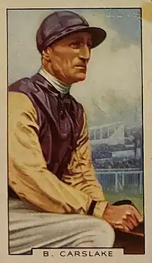 Bernard "Brownie" Carslake (14 July 1886 - 29 July 1941) was an Australian-born, but mainly England-based, flat racing jockey, who in a career of over three decades won every British Classic except the Derby, as well as becoming champion jockey of Austria-Hungary and Russia. He was ranked 12th in the Racing Post jockeys of the 20th Century.[1]