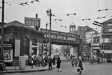 Bruce Grove is a London Overground station on the Lea Valley lines located in central Tottenham in the London Borough of Haringey, north London. It is 6 miles 28 chains (10.2 km) down the line from London Liverpool Street and is situated between Seven Sisters and White Hart Lane. Its three-letter station code is BCV and it is in Travelcard zone 3.