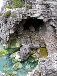 Bruce Peninsula National Park is a national park on the Bruce Peninsula in Ontario, Canada. Located on a part of the Niagara Escarpment, the park comprises 156 square kilometres and is one of the largest protected areas in southern Ontario, forming the core of UNESCO's Niagara Escarpment World Biosphere Reserve.[1] It was established in 1987 to protect the rock formations and shoreline of the Niagara Escarpment.[2] The park offers opportunities for many outdoor activities, including hiking, camping, and bird watching. The park has trails ranging in difficulty from easy to expert, and connects to the Bruce Trail. Bruce Peninsula National Park is known for its crystal clear blue waters, cobblestone beaches, rocky cliffs and karst formations.[2]