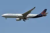 A Brussels Airlines Airbus A330-300 in an interim livery