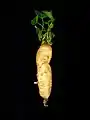 The root can be 75 cm (30 in) long and 75 mm (3.0 in) thick. John Gerard's Herball (1597) states that: "The Queen's chief surgeon, Mr. William Godorous, a very curious and learned gentleman, shewed me a root hereof that waied half an hundredweight, and of the bignes of a child of a yeare old."[2]