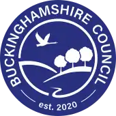 The logo of Buckinghamshire Council consists of a blue circle with a white swan flying above hills, with a row of three trees. The words 'Buckinghamshire Council' and 'est.2020' are written above and below respectively.