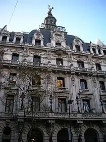 The outmoded headquarters of what was then Argentina's second-largest newspaper, La Prensa, led its influential proprietor in 1894, José Clemente Paz, to purchase a 1300 m² (14,000 ft²) lot on the newly opened Avenida de Mayo, and he commissioned local architects Carlos Agote and Alberto Gainza to design a new headquarters at the site. Agote and Gainza, both graduates of the École Centrale des Arts et Manufactures, drew from their training in Paris to create a Beaux-Arts design, beginning with a façade inspired by French architect Charles Garnier.