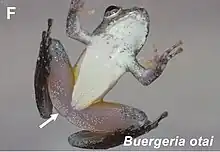 Buergeria otai is a species of frogs in the family Rhacophoridae. It is endemic to Taiwan[1][3][4] and found in the eastern and southern parts of the island.[1][3] Buergeria choui,[lower-alpha 1] with whom Buergeria otai was confused before described as a distinct species in 2017, occurs in northwestern Taiwan.[2] The two species have only a narrow contact zone and can be distinguished based on genetic markers, calls, and morphology.[2]