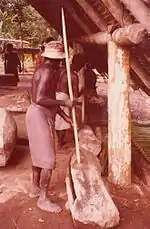 Men of a village immediately outside Buin engaging in traditional drumming, conveying coded messages.