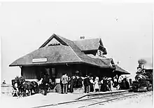 The railway era dawned in the area in 1853 with the opening of the Great Western Railway between Hamilton and London, but it passed north of Burford, leaving the community languishing as horse-drawn traffic dwindled along its main roadway. A new boost of prosperity came when a rail line was opened from Brantford to Norwich and Tillsonburg in Oxford County in 1878, passing through Burford south of the fairgrounds. Initially the advantage was easier access to and from Brantford and Tillsonburg by rail for passengers, and Burford remained a quiet village, described in 1883 as "built up to a great degree by farmers who have realized enough to retire from business and take up their abode there. In summer time Burford Village is as pleasant a holiday resort as can be found in the Province, and the hotel provides most comfortable accommodation. There are no saloons or liquor stores; the village enjoys an Arcadian freedom from drunkenness and other offences against law and order."[10] It was probably this which convinced British artist Robert Whale to make Burford his home when he brought his family to Canada. Eventually a milk processing factory and a canning factory located on the rail line at Burford, and freight traffic kept the line in operation for a century, but it was abandoned between Burford and Tillsonburg in 1987, and between Brantford and Burford in 2001.[11] The tracks have since then been removed along the line, but the path of the railway right-of-way is still visible using Google Maps satellite view.