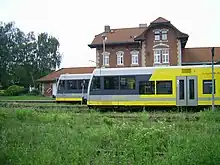 The Burgenlandbahn is a brand that DB Regio uses for their local passenger rail transport in southern Saxony-Anhalt, Germany. Since 1999, it has served several branch lines, some of them have been canceled in the meantime. With the Burgenlandbahn great hopes were combined to secure the area network by low operating costs despite low population density permanently.[1]