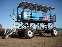 The sea tractor is used to ferry visitors to the hotel during high tide
