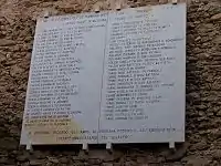A marble memorial in remembrance of those who died in the Earthquake in Bussana Vecchia