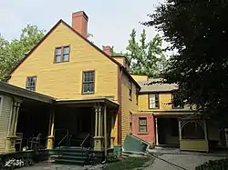 The Butler-McCook Homestead is located south of downtown Hartford, on the east side of Main Street at the Pulaski Mall. It is a 2+1⁄2-story wood-frame structure, with a side-gable roof, clapboarded exterior, and twin interior chimneys. Its main facade is five bays wide, with a center entrance sheltered by a shallow projecting portico with round columns, hip roof, and projecting cornice. The front roof face is pierced by three dormers, two small ones flanking a large central one. The house's rear structure contains a colonial kitchen on the first floor, and the structure's second floor was added in the 19th century. The house stands on about 2 acres (0.81 ha) of land, part of which has formal gardens created by landscape architect Jacob Weidenman, the principal designer of Hartford's Bushnell Park. Attached to the right side of the house is a late 19th-century single-story structure.[2]